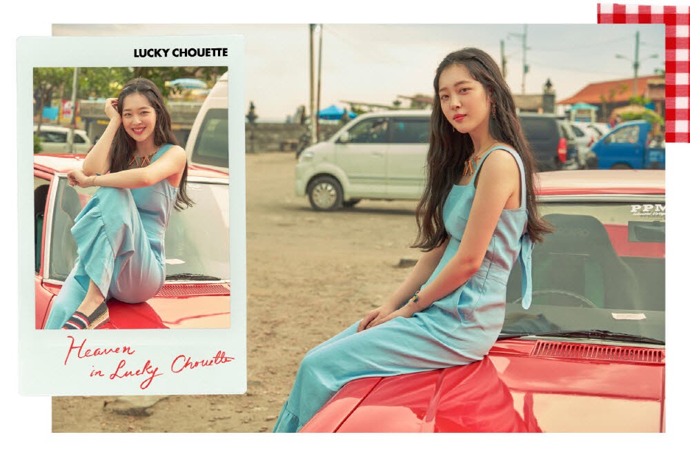 ‘럭키슈에뜨’의 썸머 씨 점프수트는 밝은 솔리드 컬러를 적용하여 깔끔하게 입을 수 있는 상품으로 앞에서 보면 상체를 다 가려주는 디자인이기 때문에 단독으로 입으면 더 과감한 리조트룩을 완성할 수 있으며 이너 티셔츠와 함께 매치하면 귀여운 느낌을 준다. 밑단에 러플 디테일로 사랑스러운 분위기를 자아내며 뒷면은 깊게 파인 디자인에 원단을 리본처럼 묶어서 활용할 수 있다.