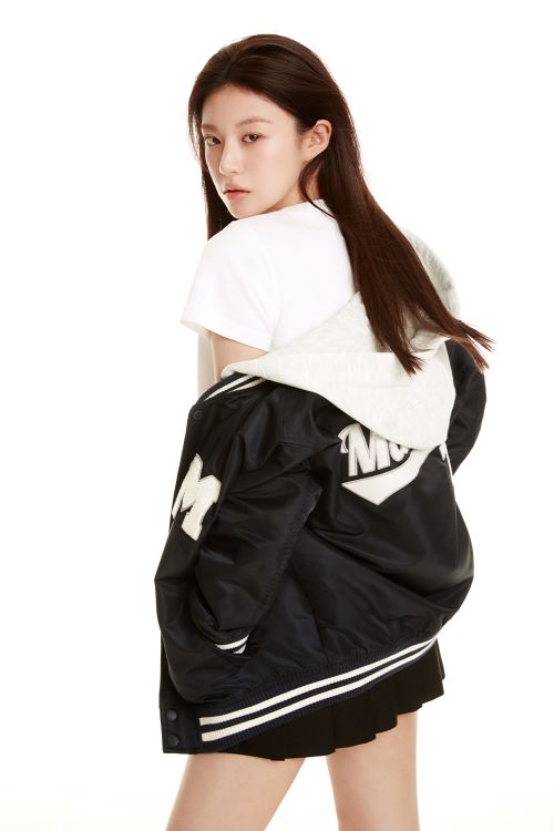 이외에도 아플리케 디테일의 후드 베이스볼 재킷을 흘러내린 듯 연출하고 뒤를 돌아보는 포즈를 취하며 눈을 뗄 수 없는 아우라를 발산했다.