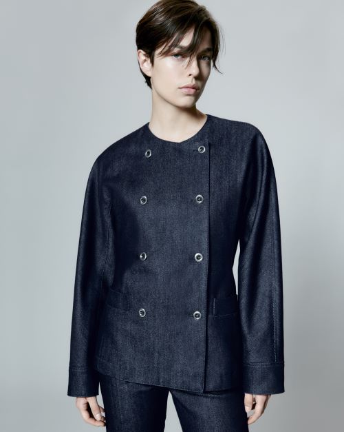 인디고 염색 데님 연사를 날실로 사용하고 회색 실크를 씨실로 사용하여 세밀하게 직조되는 데님 실크는 50m를 생산하는 데 꼬박 하루의 공을 들여야만 탁월한 부드러움과 특유의 촉감을 선사하는 가볍고 역동적인 고급 패브릭으로 탄생한다.
