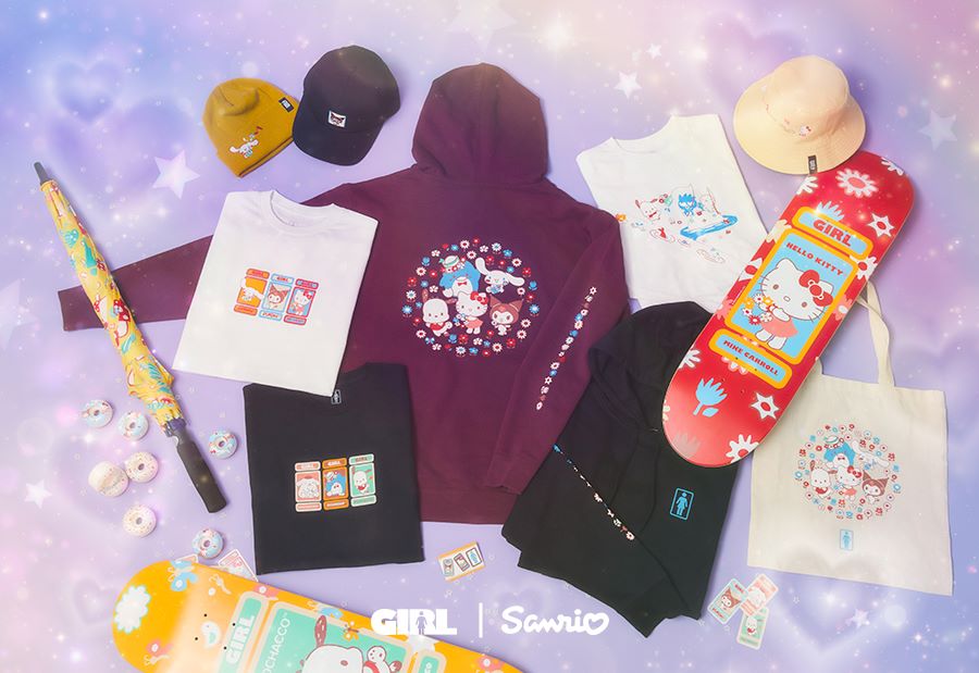 유니섹스 캐주얼 ‘걸스케이트보드’가 산리오와의 협업 컬렉션을 출시했다.