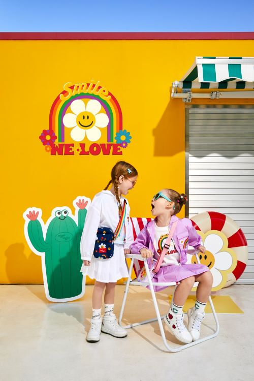 이번 컬렉션은 바람막이 점퍼, 티셔츠, 셋업, 수영복, 가방 등 다채로운 라인업으로 구성됐다. ‘위글위글’의 시그니처 IP인 스마일위러브 레인보우 디테일을 적용한 바람막이 점퍼와 티셔츠는 통기성이 우수해 활동이 많은 아이들에게 쾌적함을 줄 수 있는 아이템이다. 여기에 ‘위글위글’ 대표 디자인 IP로 전개된 크로스백을 매치하면 위트 있고 컬러풀한 여름맞이 코디를 완성할 수 있다.