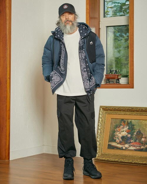 특히 시니어 모델 김칠두를 통해 등산복도 멋스럽게 연출 가능하다는 점을 강조하며 중후한 매력의 아웃도어룩을 제안했다. 카고 팬츠, 배기 팬츠, 데님과 함께 입거나 등산 양말과 트레킹화에 포인트를 준 착장으로 실용적이고 스타일리시한 아웃도어 패션으로 완성했다.