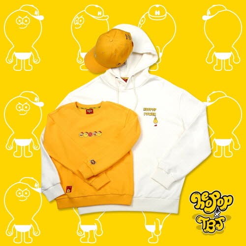‘TBJ’ 허팝 콜라보레이션 상품은 허팝 고유의 노란색과 익살스러운 표정이 돋보이는 캐릭터를 티셔츠, 맨투맨, 후드, 모자 등 다양한 제품에 적용했다. 또 성인과 아동 사이즈 모두 출시돼 온 가족이 즐길 수 있는 패밀리룩으로 활용할 수 있다.
