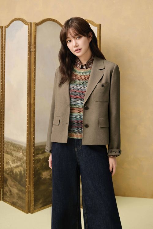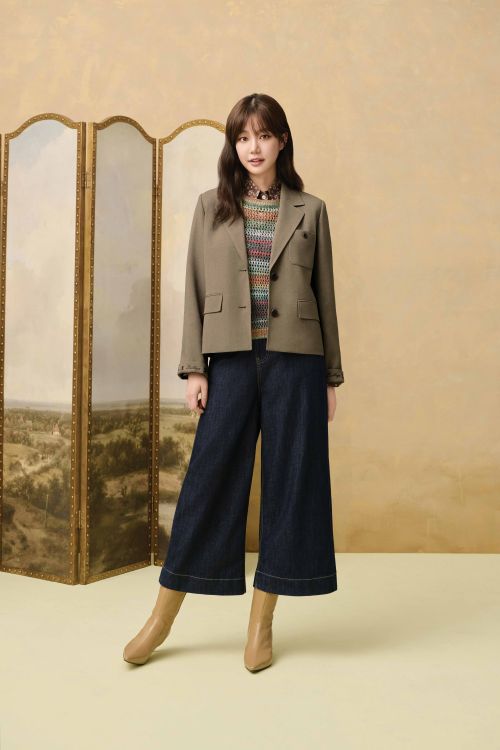 또한 모던 클래식 디자인의 브라운 테일러드 싱글 자켓에 컬러 배색 라운드 니트와 플라워 패턴의 블라우스를 레이어링하고 7부 와이드 데님 팬츠를 매치해 ‘무자크’만의 편안하면서도 로맨틱한 무드가 돋보이는 가을 룩을 완성했다.