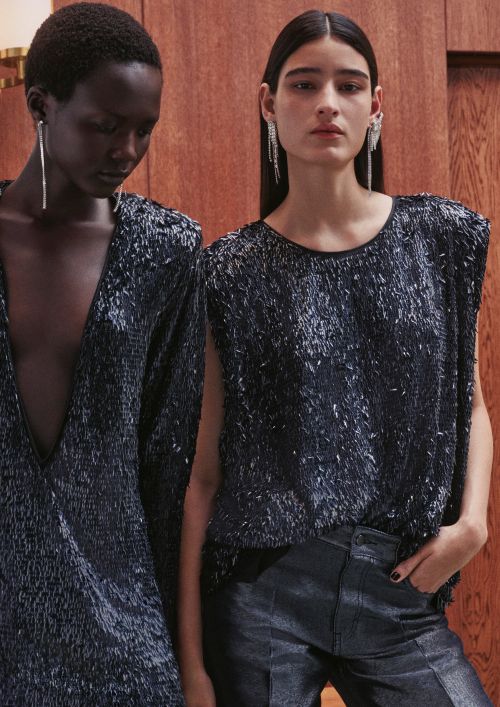 특히 소재와 텍스처는 컬렉션의 특징으로, 고급스러운 벨벳, 루렉스, 스팽글 등 새로운 기법을 적용한 아이템부터 페이크 퍼, 시어링, 가죽, 브러시드 니트, 루프 니트, 태슬 디테일까지 다양하게 선보인다.