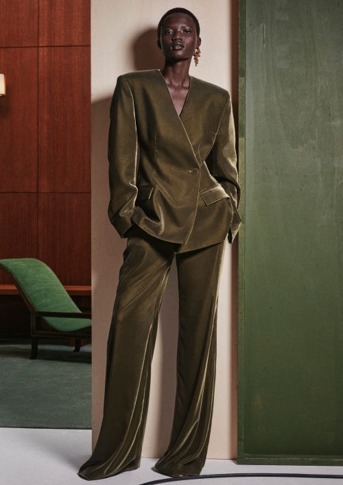 컬렉션의 키 아이템으로는 자수 디테일이 더해진 블랙 벨벳 키모노 스타일의 재킷과 매칭 팬츠, 넥라인의 벨벳 스트랩이 포인트인 블랙 오픈백 슬리브리스 새틴 톱과 벨벳 사이드 패널이 들어간 시어 벌룬 팬츠, 그리고 드레이핑이 돋보이는 우아한 드레스와 톱, 블랙 워터폴 스트랩리스 톱과 함께 매치한 형태감 있는 더블브레스트 블랙 턱시도 등이 있다.