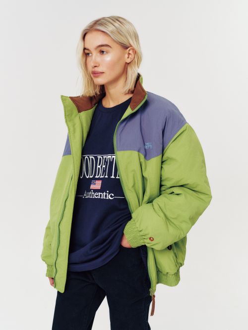 여유로운 오버핏과 톤온톤의 배색 매치가 돋보이는 ‘컬러 블록 마운틴 패딩 점퍼’는 하이넥 디자인으로 찬 바람을 막아주며 소매와 밑단의 스트링으로 실루엣을 자유롭게 조절할 수 있다. 또 양쪽 포켓에는 스냅 버튼을 적용해 실용성을 높였으며, 미니 자수 로고로 포인트를 더했다.