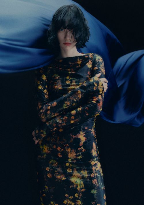 볼륨감 있는 러플 드레스와 날카로운 숄더 블레이저, 강렬한 도트 레이스와 다크하지만 화려한 플로럴 프린트, 워시드 레더에서 시스루 스팽글 메시까지 폭넓은 아이템으로 완성된 컬렉션이다.