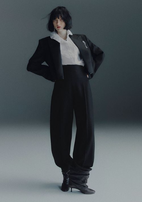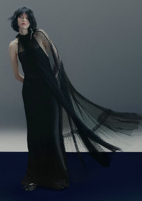 키 아이템은 과거의 향수를 불러일으키면서도 현대적으로 재해석된 디자인 트위스트로 완성된다. 크롭 블레이저와 하이웨이스트 트라우저에 뒷면 슬릿을 더한 강렬한 블랙 턱시도, 하이 러플 칼라와 깊은 러플 헴이 돋보이는 블랙 도트 메시 케이프를 슬리브리스 블랙 드레스 위에 레이어링한 투인원 스타일 등이 눈길을 끈다.