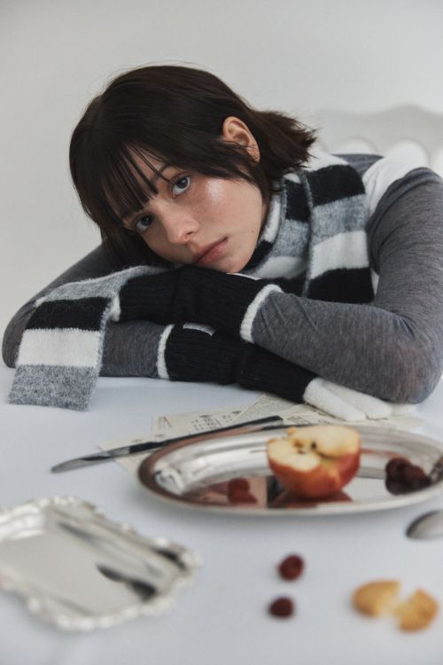 니트 숄 스카프는 어깨에 두르거나 머리에 모자처럼 연출할 수 있는 아이템이다. 따뜻한 소재에 자수 포인트가 적용돼 연말 선물용으로도 좋다.