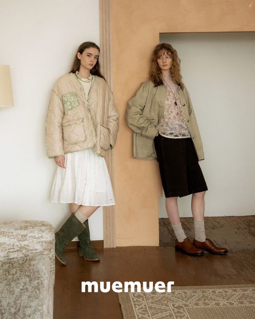 이번 컬렉션은 조용한 감성 위에 프렌치 특유의 무심한 여유를 더해 꾸미지 않은 듯 자연스러운 데일리 스타일을 제안한다. 레이어링을 중심으로 한 스타일링을 통해 ‘뮈뮈에르’만의 편안한 무드를 강조하며 워크 재킷과 페이즐리 퀼팅 재킷을 비롯해 빈티지한 요소를 현대적으로 재해석한 디자인이 특징이다.