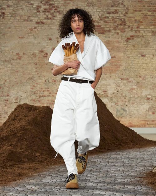 클리셰를 포용하면서도 전복하고 유머를 진지하게 다뤘던 ‘모스키노’ 창립자 프랑코 모스키노에 영향을 받은 이번 컬렉션은 지역성과 세계성, 친밀함과 관광적 시선을 동시에 품고 있다.