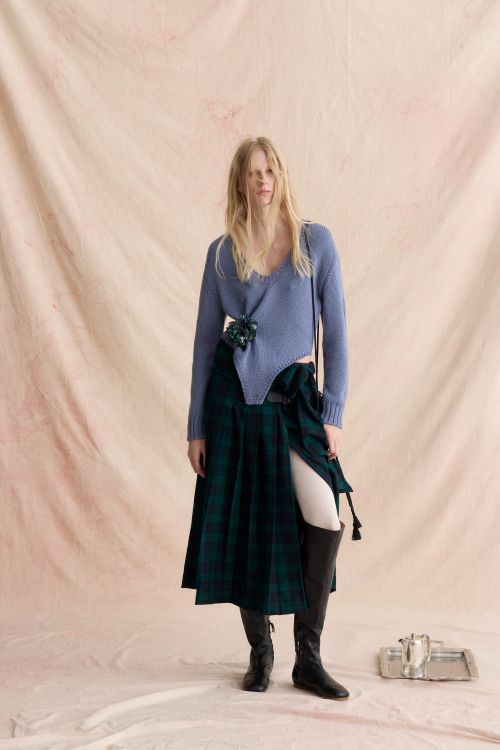체크 블레이저, 타탄 패턴, 페어아일 니트, 아가일 폴로넥 등 왕실의 옷장에서 영감을 얻은 클래식 아이템은 예상치 못한 소재와 조합을 통해 새롭게 재구성됐다. 특히 왕실의 상징적인 레오파드 모티프는 자카드 코트와 실크, 벨벳 소재 셋업에 적용돼 럭셔리한 감성을 강조했다. 로열 스카프 역시 새로운 컬러 팔레트로 재해석되며 컬렉션에 현대적 무드를 더했다.