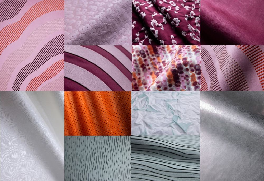 라인업은 13개 샘플로 구성됐다. 혁신적 디자인과 미세 기하학 패턴이 특징이다. 은은한 텍스처가 대담한 컬러와 맞물리고 부드러운 라인이 섬세한 톤과 조화를 이룬다. 타공과 엠보싱 기법으로 깊이와 움직임을 더했고 디지털 프린팅과 자수로 추상적이면서 손으로 그린 듯한 모티프를 표면에 재현했다. 공기 분사와 주름 효과를 결합한 크리즈드 처리, 물결 형태의 플리츠 등 추가 공정도 소재의 유연성과 역동성을 강화했다.