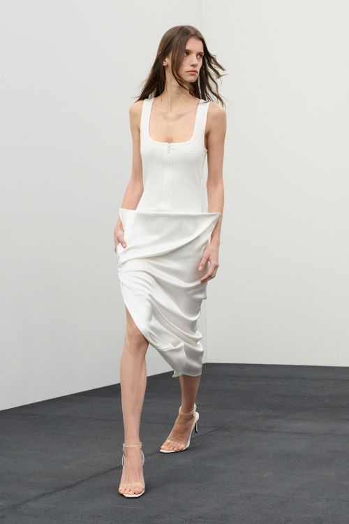 아티스틱 디렉터 니콜라디 펠리체는 ‘24 Hours in the Life of a Courrèges Woman’을 주제로 파리의 한 여성이 아침부터 밤까지 보내는 하루의 흐름을 하나의 워드로브로 풀어냈다.