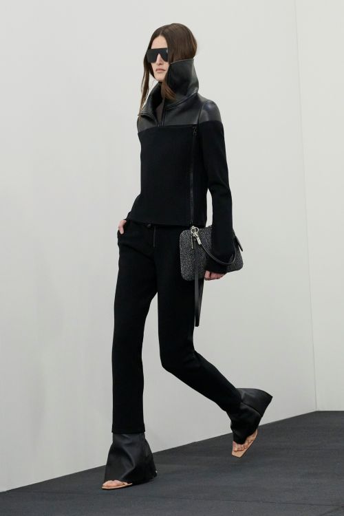 이러한 실루엣은 1960년대부터 1980년대까지 이어지는 하우스 아카이브에서 출발해 낮 시간대의 코트와 아우터로 확장되었다. 스냅 버튼 디테일, 트라페즈 실루엣, 비닐 소재 셋업, 인젝티드 지퍼 등 꾸레쥬를 상징하는 디테일이 곳곳에 반영되었다.