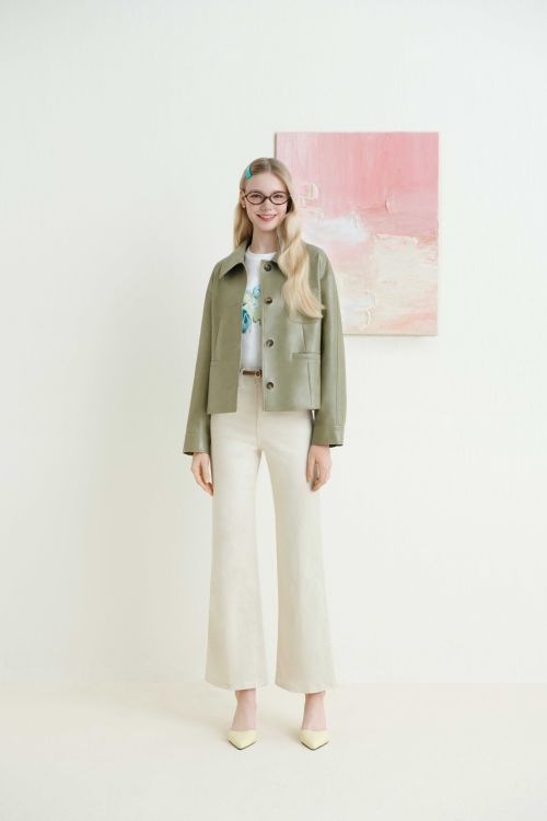 브라운 컬러의 스웨이드 하프 재킷은 부드러운 터치감과 힙을 덮는 여유로운 오버핏 실루엣으로 다양한 이너와 레이어링하기 좋으며 올리브 컬러의 스탠카라 레더 재킷은 은은한 광택과 크롭 기장이 돋보이는 아이템으로 트렌디한 아웃핏을 완성할 수 있다.