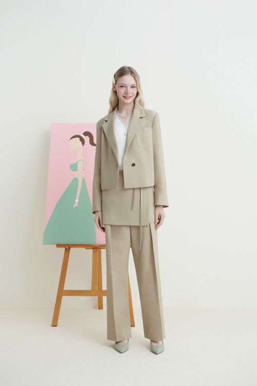공개된 화보 속 베이지 컬러의 반더블 크롭 재킷은 깔끔한 테일러드 카라와 포켓 디테일 포인트로 단정하고 미니멀한 무드로 스타일링이 가능한 아이템이다. 같은 톤의 레이어드 랩 스커트 팬츠와 셋업으로 매치하면 세련된 봄 오피스룩을 완성할 수 있다.