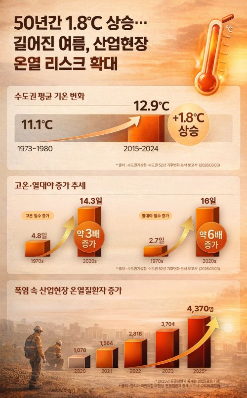 실제 온열질환 피해는 꾸준히 증가하고 있다. 질병관리청 수도권질병대응센터에 따르면 지난해 수도권 온열질환자는1,808명으로 전년 대비 32.3% 증가했다. 전국 환자 4,460명 가운데 약 40%가 수도권에서 발생했다.