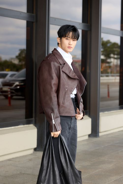 NCT 마크는 폴디드 레더 브라운 컬러 바이커 재킷과 코튼 셔츠를 함께 착용하고 로우 라이즈 실루엣이 돋보이는 데님 팬츠를 매치해 쿨한 무드의 공항패션을 선보였다. 여기에 타비 앵클부츠와 글렌 마틴스가 2026 봄여름 컬렉션에서 새롭게 선보인 블랙 컬러 미디엄 박스 백을 더해 트렌디한 출국 룩을 연출했다.