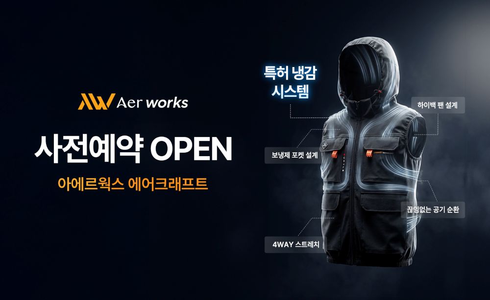워크웨어 플랫폼 브랜드 ‘아에르웍스’는 이 같은 수요에 대비해 팬 장착형 냉감 워크웨어 ‘에어크래프트’의 국내 최초 사전예약을 받는다.