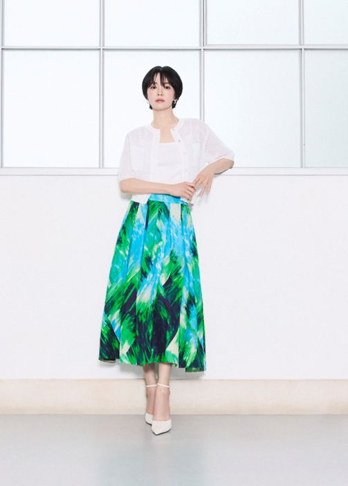 여기에 시원하고 산뜻한 컬러의 프린트 스커트 아이템을 더해 컬렉션 전반에 걸쳐 다채로운 여름 스타일을 제안한다.
