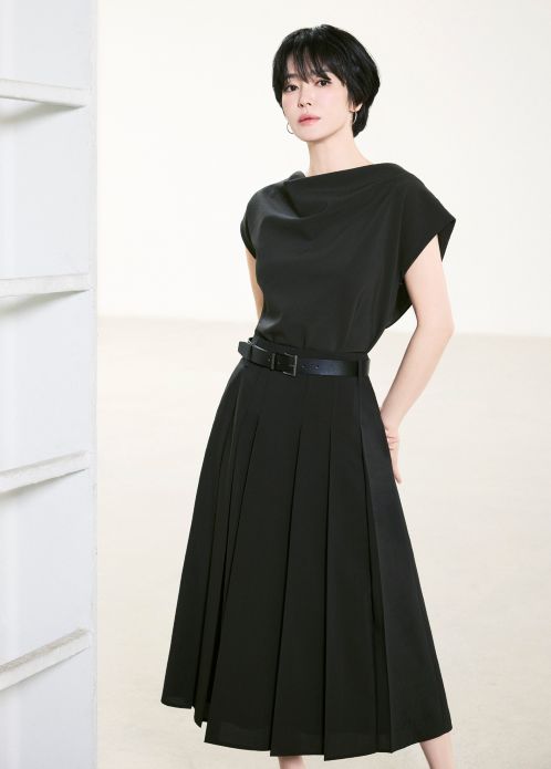 베스트와 팬츠로 구성된 셋업은 군더더기 없는 테일러링으로 도회적인 무드를 강조했으며 러플 디테일이 더해진 블라우스와 스커트 스타일링은 화사하면서도 고급스러운 분위기를 자아낸다. 또한 비대칭 실루엣의 니트 탑과 와이드 팬츠를 매치해 시크한 스타일을 완성했다.