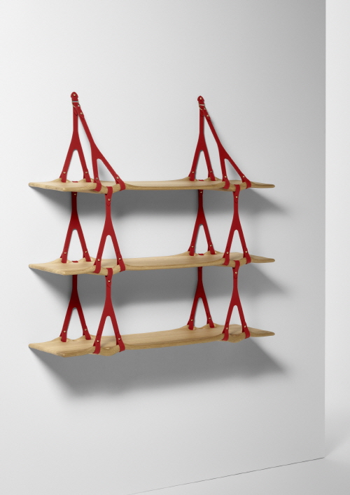 미국 샌프란시스코 기반의 디자이너인 앤드류 쿠들레스가 선보이는 오브제 노마드는 오랜 시간 파도에 쓸려 형태가 빚어진 바위를 연상시키는 오크 나무 소재로 제작된 선반으로 루이 비통의 최고급 소가죽 스트랩으로 단단히 고정된 것이 특징이다.
