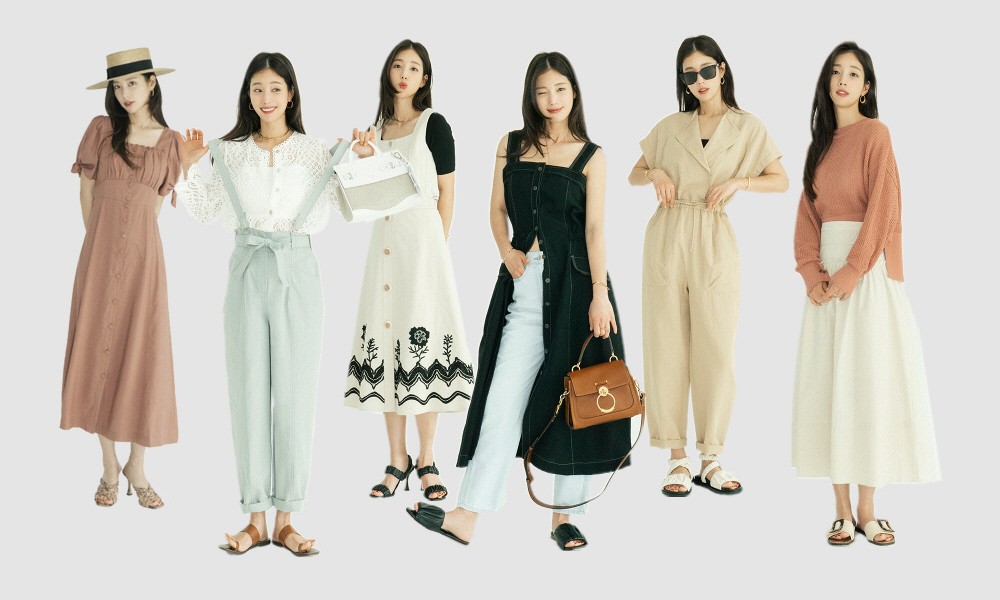 여름 대표 아이템인 원피스 스타일링으로는 퍼프소매와 프릴 장식이 돋보이는 롱 원피스로 여성스러움을 강조한 룩을 선보이거나 리넨 원피스에 데님팬츠를 매치해 시크한 여름 스타일룩으로 완성하기도 했다. 여성스러운 원피스에는 짜임이 포인트인 미들 힐 샌들로 페미닌한 룩을 완성했으며 시크룩에는 블랙톤의 샌틀을 매치한 스타일링을 선보였다.