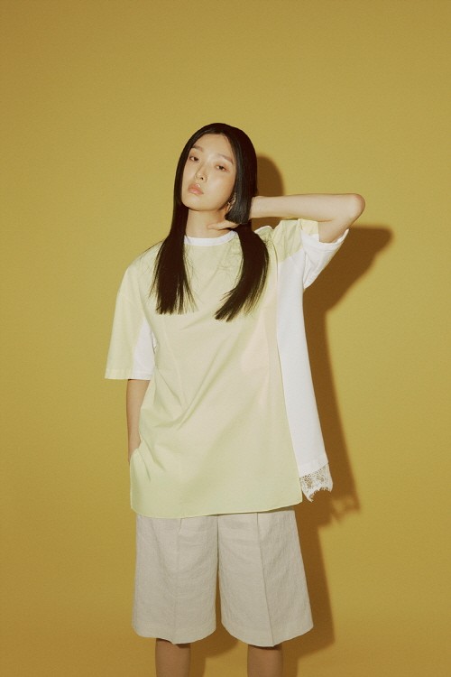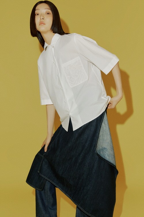 셔츠와 티셔츠를 섞은 듯한 디자인에 레이스 비대칭 밑단으로 포인트를 준 오버사이즈 상의, 레이스 자수의 가슴 포켓을 적용한 매니시한 반팔 셔츠롱 셔츠에 맨투맨을 레어어링한 듯한 원피스둥근 실루엣의 배기 핏 데님 팬츠미디 기장의 큐롯 데님 팬츠 등을 선보였다.
