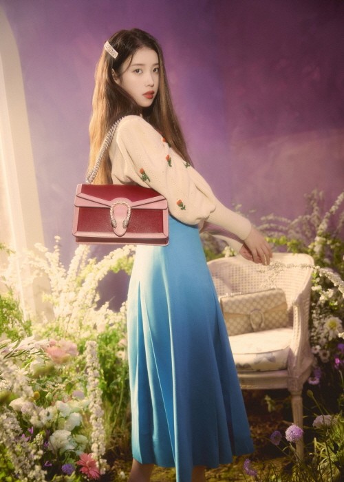 이번 캠페인에서는 촬영을 준비하며 대본을 읽고 세트 앞에서 멋지게 포즈를 취하는 아이유와 함께 알레산드로 미켈레가 아카이브 요소에 대한 현대적인 해석을 가미해 디자인한 ‘구찌’ 비러브드 핸드백 라인을 만나볼 수 있다.