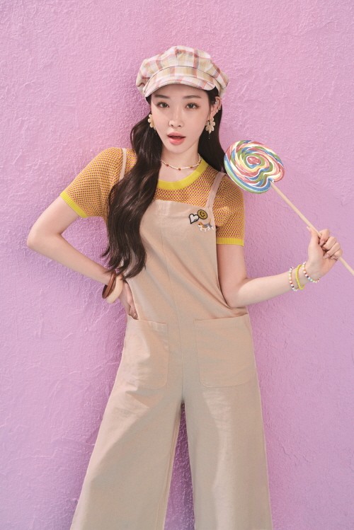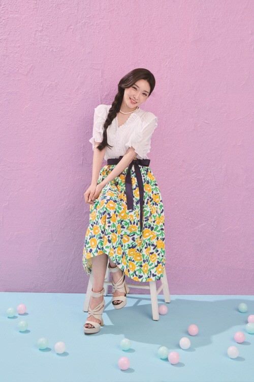 세 번째 화보로는 비비드한 옐로우 플라워 프린팅 스커트와 브이넥 펀칭 블라우스를 매치해 화사함이 돋보이는 청순하고 사랑스러운 페미닌 룩을, 마지막으로 옐로우, 오렌지 배색패턴 니트와 깔끔한 디자인의 리넨 와이드 점프수트 화보로 시원하면서 편안한 착장의 여름 코디를 제안했다.