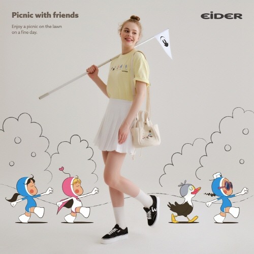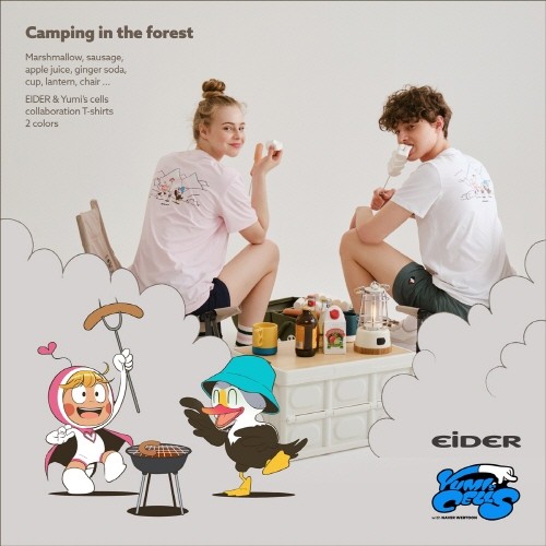 ‘유미의 세포들’은 평범한 직장인 유미의 머리 속 세포들을 통해 이야기를 펼쳐 나가는 신선한 내용으로 누적 조회수 32억뷰를 기록한 인기 웹툰이다. ‘아이더’의 본 고장인 ‘프랑스 안시’로 여행을 떠나는 ‘유미’와 ‘유미의 세포들’의 모습을 하나의 이야기로 그려 ‘아이더’ 제품에 반영했다. 여행 스토리를 담은 아기자기한 티셔츠부터 아이더의 캐릭터 ‘오리’와 함께 프랑스 안시에서 캠핑을 즐기는 ‘사랑 세포’가 그려진 버킷백 등 제품 곳곳에 숨은 ‘유미’와 ‘유미의 세포들’을 보는 재미가 있다.