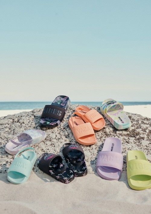 이번 키즈 컬렉션은 해변가에 어울리는 다양한 옷과 액세서리로 구성되어 있으며 혁신적인 기술로 해조류에서 추출한 소재로 만든 샌들을 비롯하여 리사이클 코튼, 오가닉 코튼, 리사이클 폴리에스터 등 지속가능한 소재가 사용되었다.