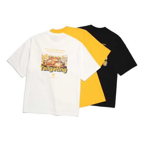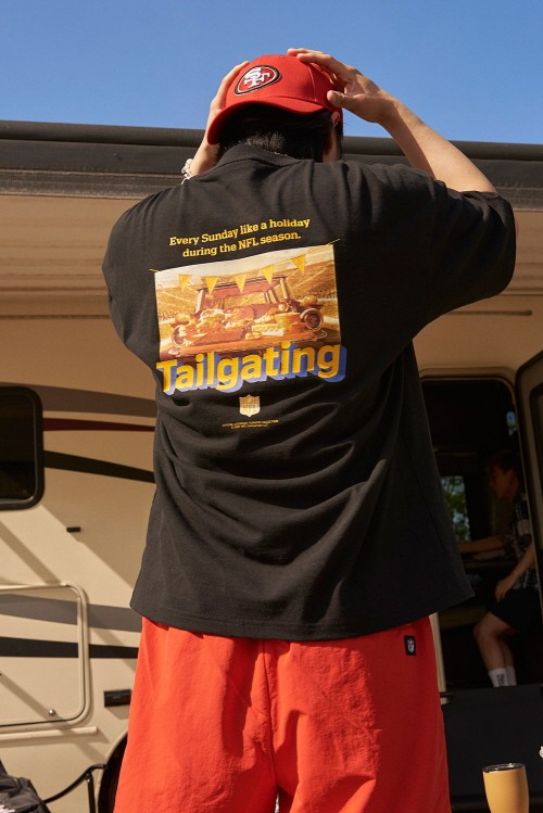 이번 시즌 테일게이팅 컬렉션으로는 빈티지한 색감이 돋보이는 티셔츠를 선보인다. 제품은 티셔츠 앞면에 ‘엔에프엘’ 로고가 새겨진 라인과 티셔츠 뒷면에 테일게이팅 그래픽 이미지가 적용된 라인으로 나뉘며 Mustard, Sunburn Brown, Ensign Blue 등의 빈티지한 색감을 중심으로 레트로 감성을 표현했다.