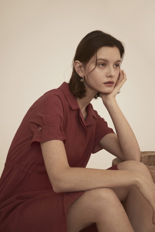 벨티드 카라 원피스는 셔츠형 디자인에 아래로 자연스럽게 퍼지는 세미 A라인 실루엣의 원피스다. 단추를 잠그지 않고 아우터로도 입을 수 있다. 컬러는 브라운, 그레이로 구성됐으며 내추럴한 감성이 돋보이는 심플한 액세서리를 함께 연출할 것을 추천한다.