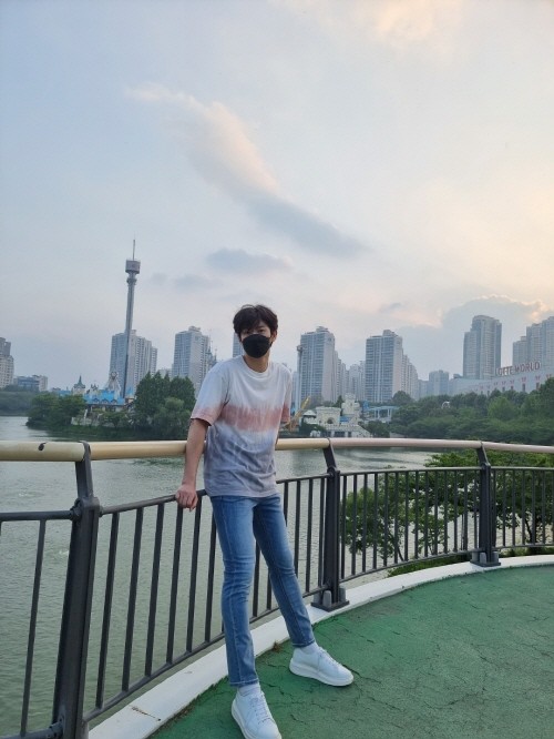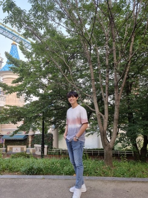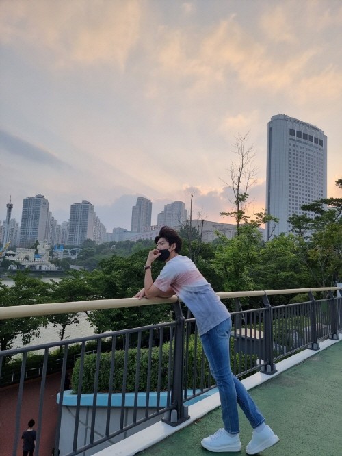 그룹 에이투식스 멤버 손현우는 쿨맥스 데님팬츠를 입고 황금비율을 뽐냈다. 슬림한 일자핏에 뒷주머니의 로고자수가 돋보이는 UP3 핏 데님과 고급스러운 컬러의 타이다이 루즈핏 라운드넥 티셔츠를 함께 코디해 스타일리시한 매력을 뿜어낸다. 모델 출신 답게 데님과 티셔츠만으로도 완벽한 여름 스타일링을 완성해 여성 팬들의 시선을 한 몸에 받았다.