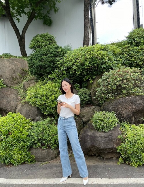 최예빈은 각선미가 돋보이는 ‘버커루’ 여름 스타일링을 다양하게 보여주고 있다. 첫 번째로 보여준 스타일은 깔끔하게 떨어지는 라인과 통기성에 탁월한 쿨맥스 와이드 데님팬츠를 빈티지한 슬럽 티셔츠와 함께 코디하여 데일리한 원마일웨어를 보여주고 있다.