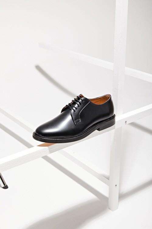 더비 슈즈는 와이드 팬츠에도 실루엣이 망가지지 않도록 코를 길쭉하게 제작한 쉐입이 특징이며 클래식 더비의 핵심인 뒷 굽 P자 매듭과 3.5cm 굽 등을 적용해 디테일을 살렸다. 특히 고급 제화 브랜드에만 사용되는 홍창을 적용해 착화감을 극대화했다.