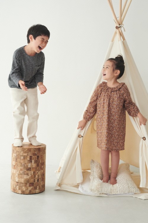 이번 컬렉션은 고품질 소재의 유아동 아이템으로 구성되어 있으며 부드러운 촉감과 세련된 디테일이 특징이다. 이번 시즌에는 가을에 어울리는 더스티 핑크, 옐로 베이지 등의 컬러가 주로 사용되었으며 형제 자매와 함께 착용하여 시밀러룩을 연출 할 수 있는 제품 라인업도 마련되어 있다. 오가닉 코튼 등의 소재를 주로 사용하여 지속가능성을 더했다.