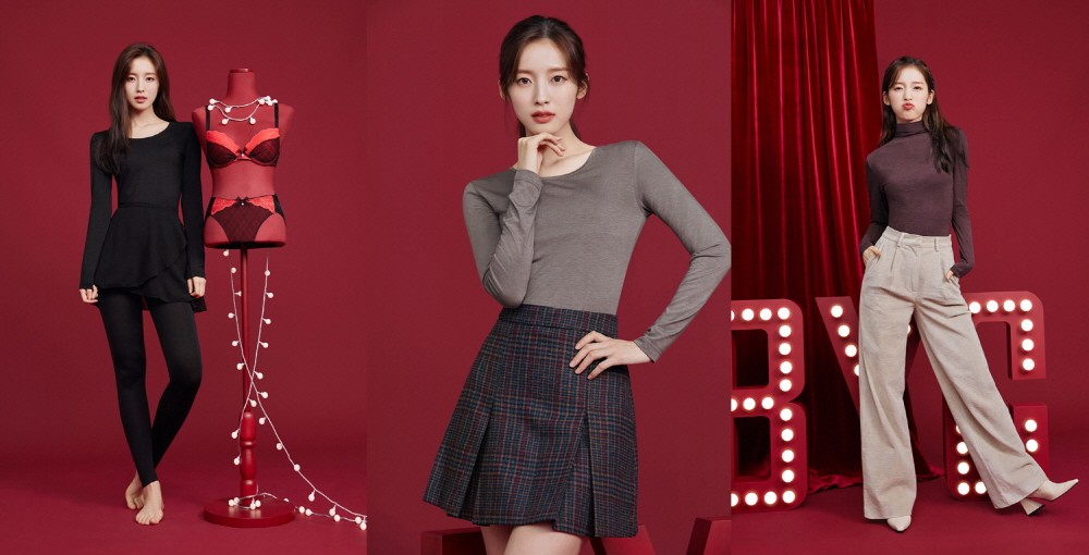 전속모델 아린은 능숙한 표정과 제스처로 다양한 컷을 연출했고 ‘BYC’ 스테디셀러 아이템 보디히트와 스트릿 스타일의 멀티 홈웨어, 편안하고 트렌디한 잠옷까지 다양한 컨셉의 제품들을 자신만의 스타일로 완벽하게 표현했다.