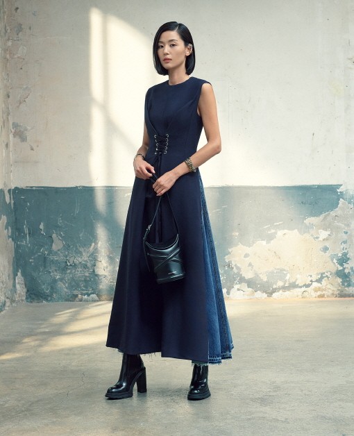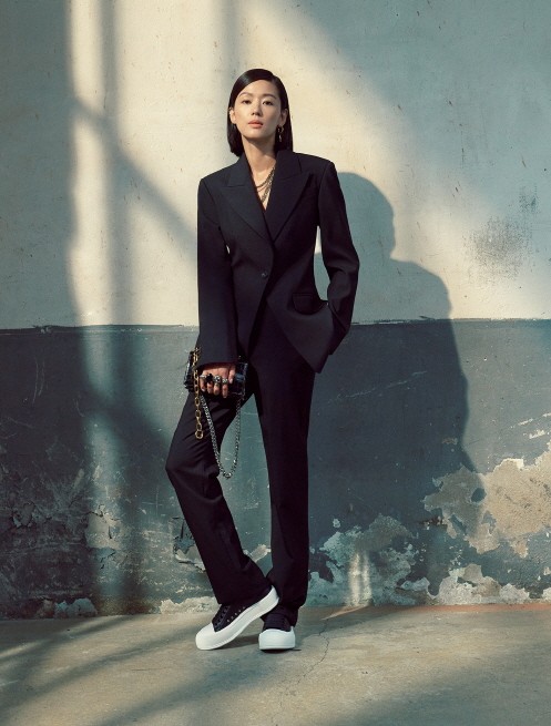 이미지 속 전지현은 한 떨기의 아네모네가 프린트 되어 있는 블랙 폴리파유 소재 드레스에 첼시 부츠를 매치하는가 하면 프린트 티셔츠와 스커트에 옥스블러드 컬러의 커브 백으로 강렬한 분위기를 연출했다.