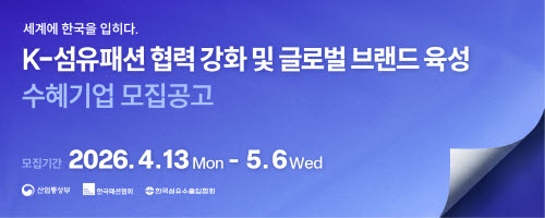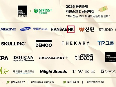 한국패션협회(회장 성래은)가 오는 4월 26일부터 ESG 플랫폼 기빙플러스(대표 정형석)와 공동으로 ‘자원순환 & 상생 마켓’을 개최하며 2026 동행축제(중소벤처기업부 주최, 한국중소벤처기업유통원 주관)에 …