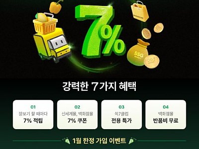 SSG닷컴 결제 금액 7% 적립 쓱세븐클럽
