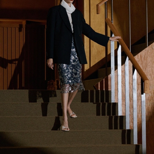특히 트렌디한 크롭 기장의 트위드 자켓인 코리나 자켓은 프랑스의 Jules TOURNIER사의 핸드메이드 트위드로 섬세하고 고급스러운 소재감이 돋보이며 디자이너 주얼리 브랜드 ‘플로우와 협업한 금속 버튼으로 포인트를 주었다