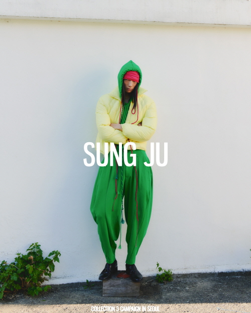 ‘SUNG JU’는 오래된 관습과 전제로부터 벗어나 자유로운 표현을 목표로 하며 구조적 요소 개념을 기반으로 새로운 컬렉션을 전개하는 브랜드다. 디자이너의 개인적 경험과 관심사에서 영감을 받아 도전적이고 실용적인 디자인 요소를 의상에 적용시켜 지속가능한 패션을 지향한다. 이에 대부분 컬렉션 의상은 재활용 소재와 친환경 소재로 사용되었다.