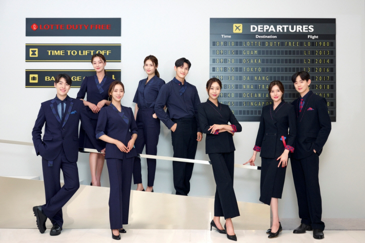 새 유니폼은 성별과 직무, 계절 등에 따라 총 8개의 착장으로 구성되며 특히 외국인 고객들에게 한국 전통의 미를 알릴 수 있도록 한복을 재해석해 유니폼 디자인에 적용했다. 옷깃과 소매 등에 한복의 특징을 살리고 롯데면세점의 비주얼 아이덴티티 패턴을 활용해 포인트를 줬다.