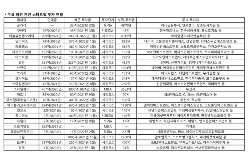 패션 스타트업들이 매출에 비해 약 3배 가량의 누적 투자금을 유치한 것으로 나타났다.