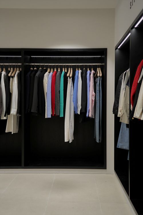 롯데 잠실점 2층 여성 캐주얼관에 입점한 매장은 ‘집의 편안함을 담은 드레스룸’을 콘셉트로 집의 연장선 같은 편안한 분위기를 강조했다. 딱딱하고 격식 있는 매장이 아닌 자신의 옷장을 열어보는 듯한 자연스러움을 느낄 수 있도록 행거와 거울, 조명의 배치에도 신경을 썼으며 긴장을 내려놓고 편안하게 머물 수 있는 단정하고 따뜻한 공간을 연출했다.