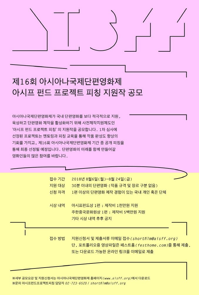 16회 아시아나국제단편영화제(집행위원장 안성기)가 오는 824일까지 아시프 펀드 프로젝트 피칭 지원작을 공모한다.